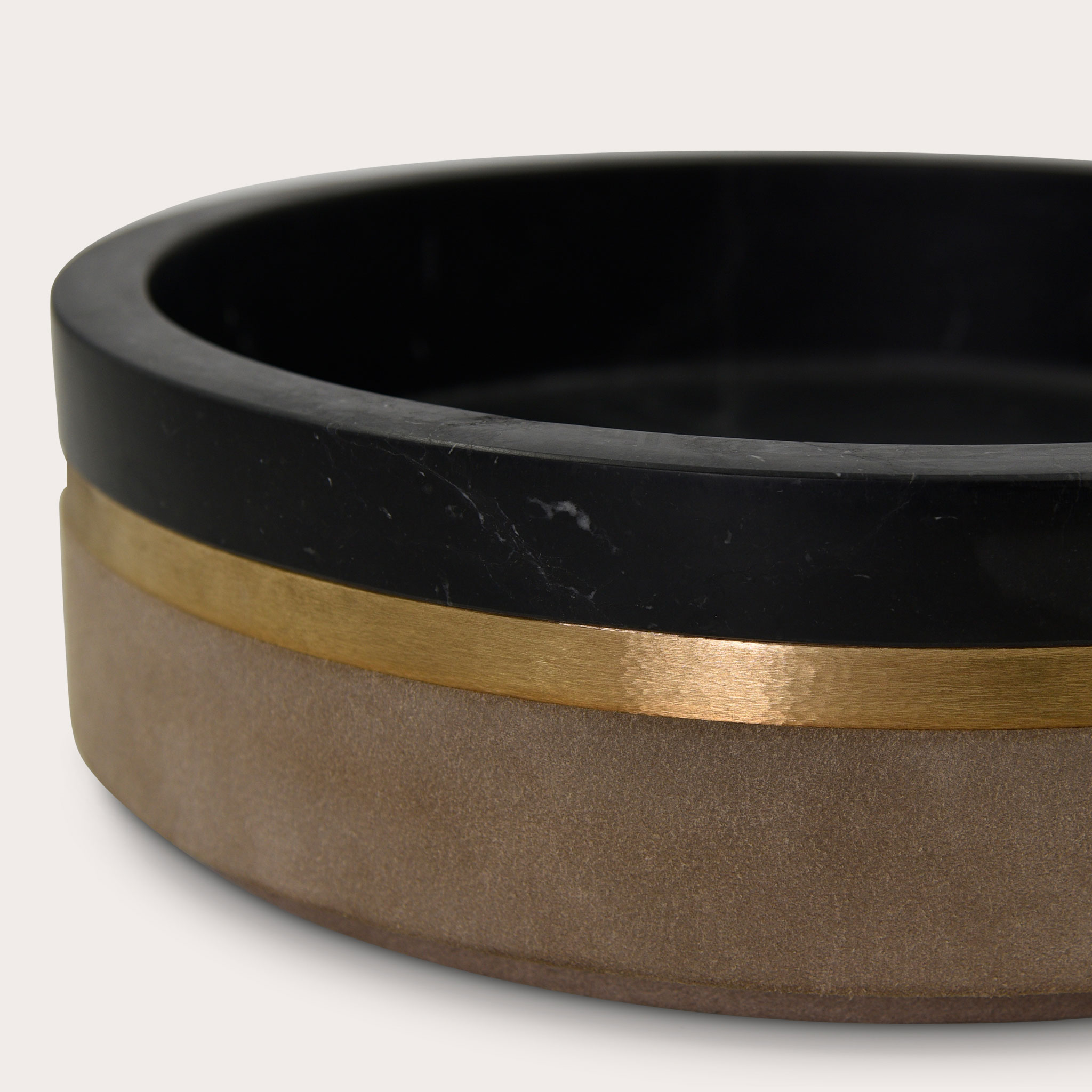 - Surface:Nero Marquina Marble with Hammered Bronze and Sand Suede Leather