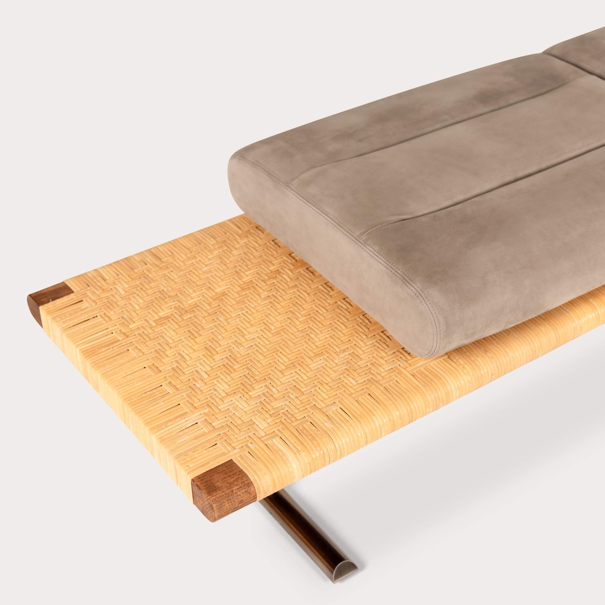 - Base:Smoked Bronze Metal and Walnut Stained Ash with Natural Rattan
