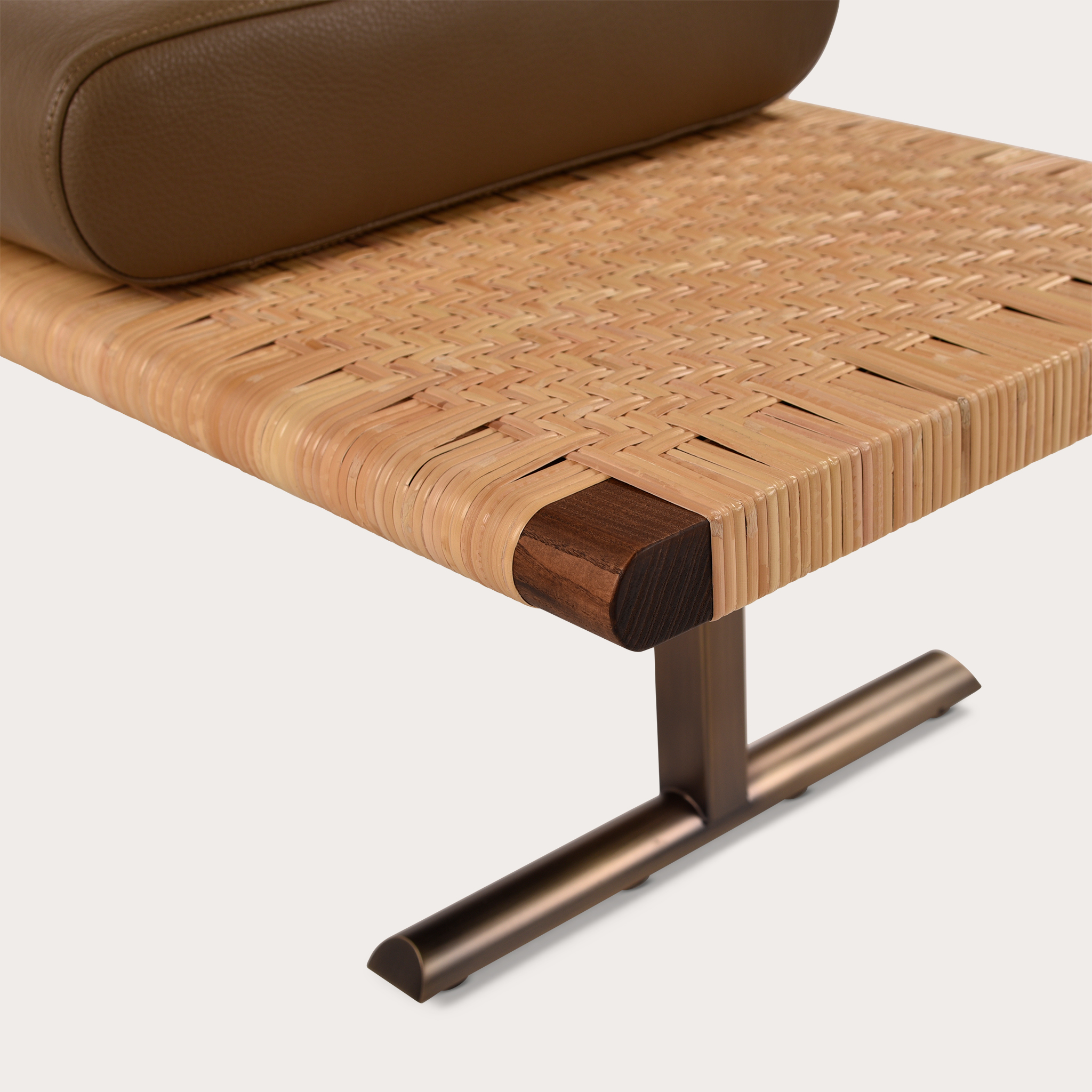 - Base:Smoked Bronze Metal Base and Walnut Stained Ash with Natural Rattan